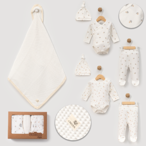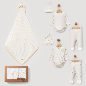ახალშობილის ხავერდის ნაკრები ყუთში