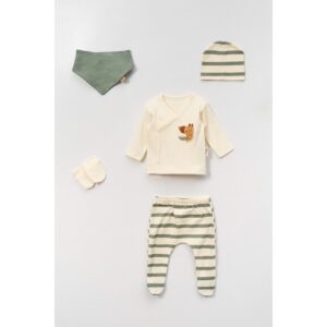 ახალშობილის ნაკრები მწვანე ზოლებით