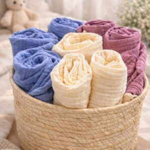 მუსლინის პლედი, ხის საწოვარას საკიდი და ხის სავარცხელი