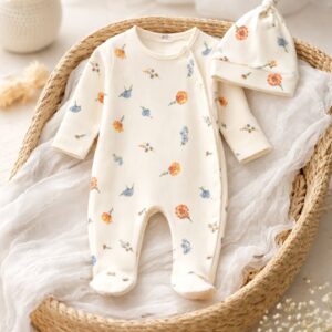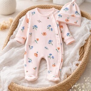 ყვავილებიანი რომპერი ქუდით