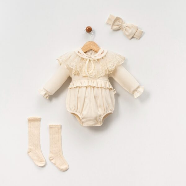 ნაკრებშია: კაბა- ბოდე, წინდა და თმის სამაგრი;