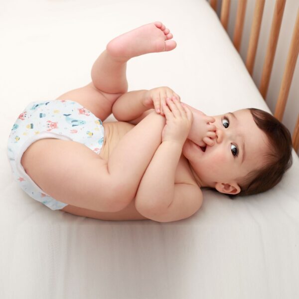 ტრუსის ქსოვილი კარგად იწოვს სითხეს და ხელს უშლის გაჟონვას ,არის სუნთქვადი ქსოვილი და არ აღიზიანებს ბავშვის კანს .