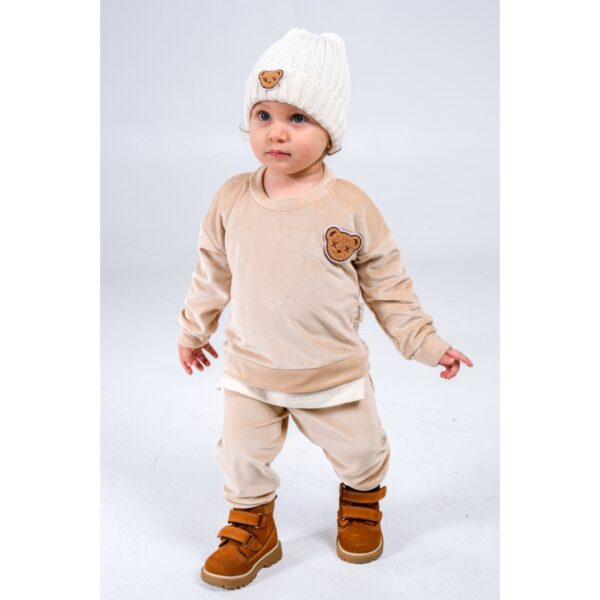 ნაკრებიშია: შარვალი, მაისური და ნაქსოვი ქუდი;