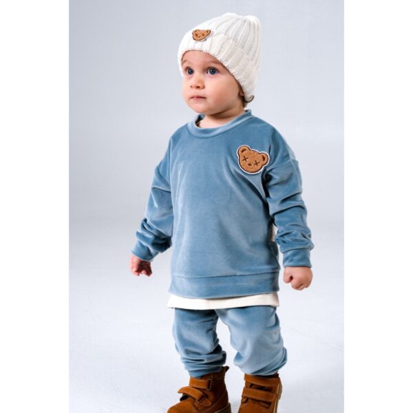 ნაკრებიშია: შარვალი, მაისური და ნაქსოვი ქუდი;